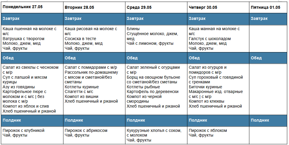 Школьное меню 2024-2025 учебный год